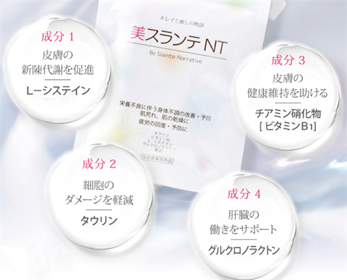 美スランテNTは、忙しい女性のために開発されたスキンケアサプリメントです。 美スランテNTの口コミでは、多くのユーザーが肌の乾燥や荒れが改善され、健康的な肌になったと評価しています。 美スランテNTの最大の特徴は、化粧品とは違い、飲むだけで肌の内側からケアできることです。 また、栄養補給もできるため、疲労回復や体力向上にも効果があります。 美スランテNTの口コミを見