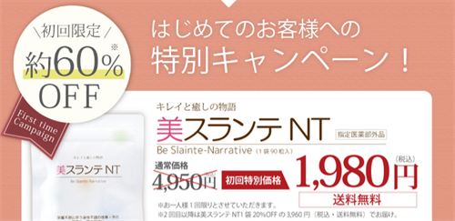 美スランテNTは、初回特別価格や定期購入割引など、お得なキャンペーンが豊富です。
