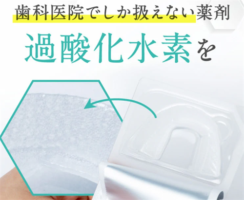 この商品は、歯科医師が処方する国内初の技術を採用し、最大濃度の過酸化水素を使ったシート型ホワイトニングで歯を内側から白くします。
