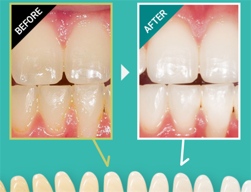 このシート型ホワイトニングは、液だれの心配がなく、歯全体に均一に薬剤が行き渡ります。