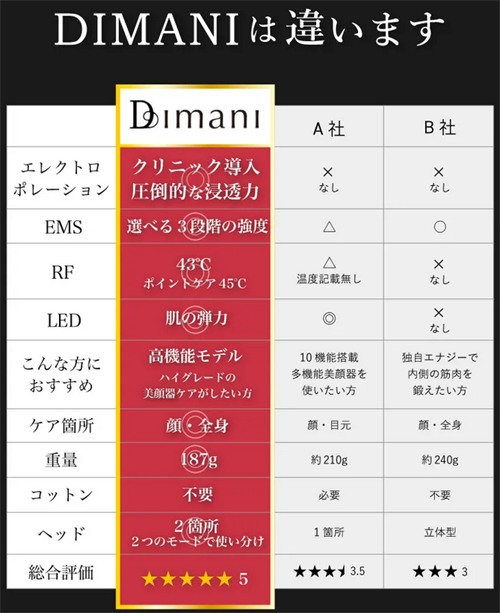 ディマーニ美顔器は他の美顔器と比較して価格がやや高めです。