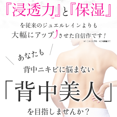 Jewel Rainは、多くのユーザーから支持されている製品であり、背中ニキビに悩む方には試してみる価値があると言えるでしょう。