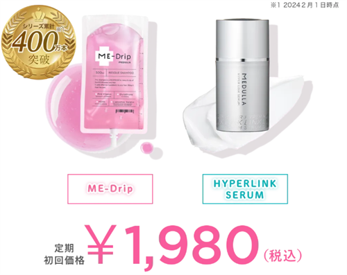 ME-Drip(ミードリップ) レスキューシャンプーとハイパーリンクセラムは、公式オンラインショップの定期コースで申し込むのが最も割安で便利です。