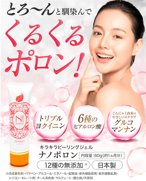 ナノポロンは、毛穴の汚れや古い角質をやさしく取り除くピーリングジェルとして、多くの人に愛用されています。