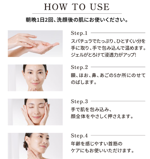化粧水、美容液、クリーム、アイセラムの役割を一つで果たし、簡単に肌を整えることができます。