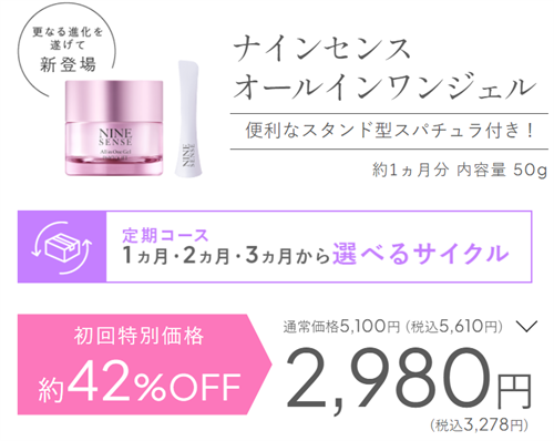 ナインセンス オールインワンジェルを初めて購入する場合、まずはキャンペーン特別価格での購入が可能です。