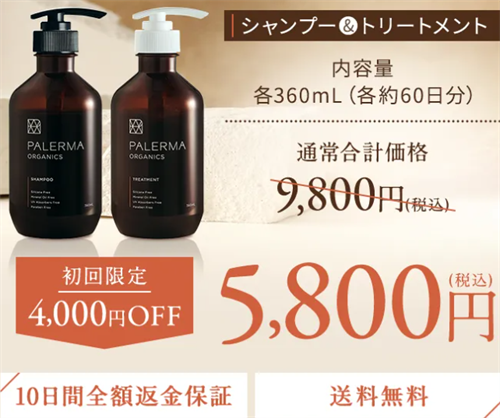 Palermaシャンプー&トリートメントには、初回お届け商品のみ対象の10日間全額返金保証があります。
