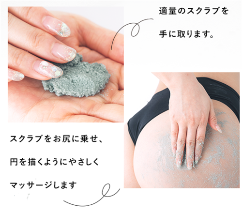 PIBU BODYSCRUBを使い始めてから、お尻のザラつきがなくなり、スベスベになりました。