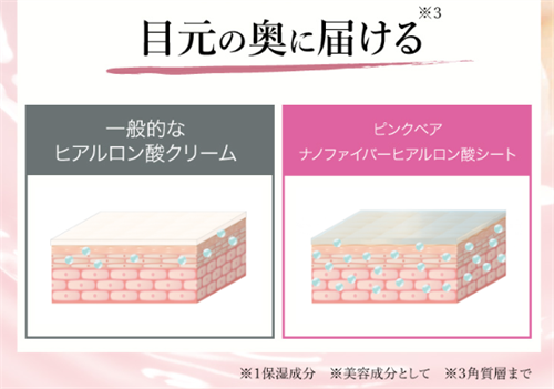 この高度なナノファイバーシートの採用により、ピンクベアヒアルロン酸シートは、ヒアルロン酸の持つ保湿力を最大限に活かすことができます。