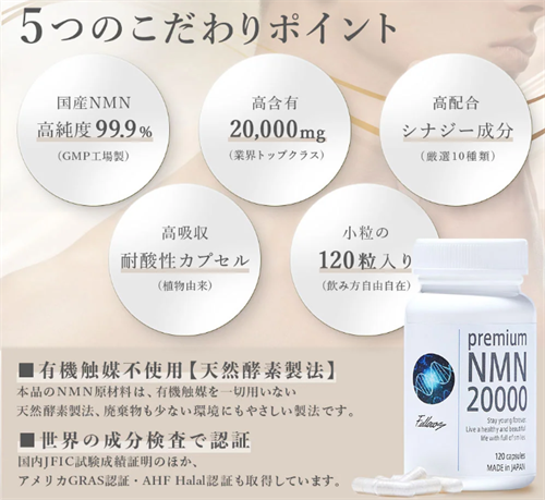 A:Premium NMN20000は、エイジングケアや美容の維持をサポートするサプリメントです。