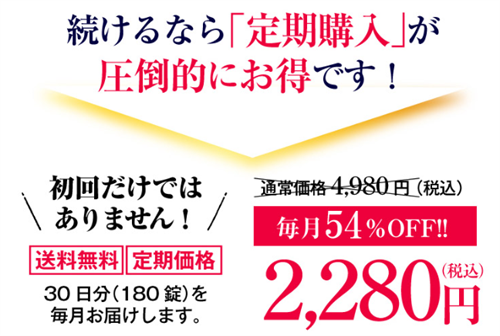 通常価格4,980円(税込)のところ、定期購入なら初回だけでなく毎月54%OFFの2,280円(税込)で購入できます。