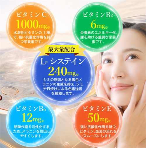 L-システインやビタミンC、ビタミンEといった有効成分がバランスよく配合されており、シミやそばかすの改善に効果的です。