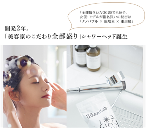 ナノバブルと脱塩素、さらに重炭酸タブレットの組み合わせが、シャワータイムを「浴美容」時間にします。