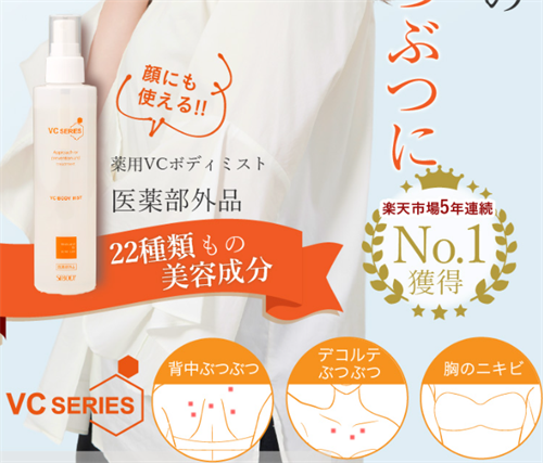 A:薬用VCボディミストは、背中や胸元のニキビに特に効果的です。